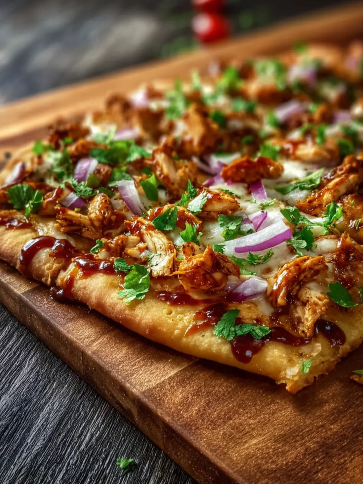 Flavorful Toppings: The combination of shredded chicken and tangy BBQ sauce serves as a flavorful base, while toppings like red onions, cilantro, and cheese elevate it even further. Each ingredient contributes to a taste adventure that keeps you coming back for more.