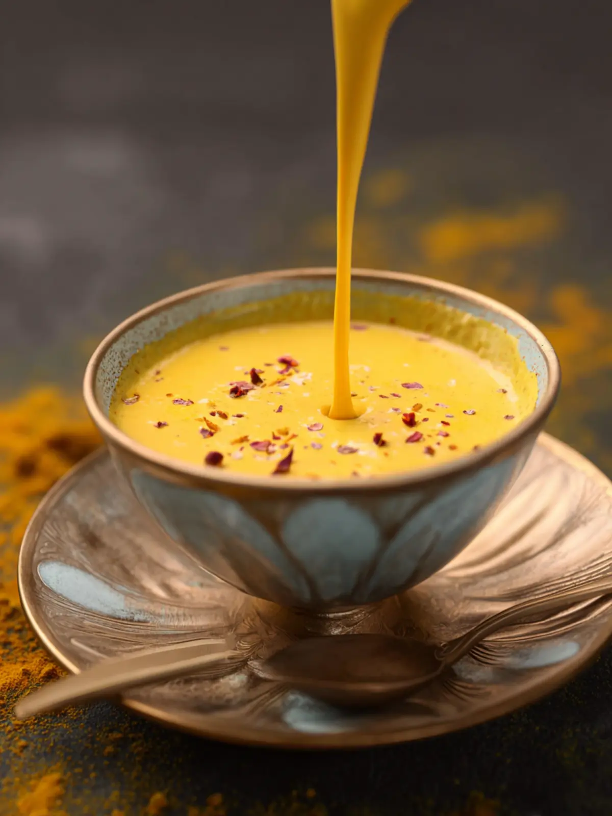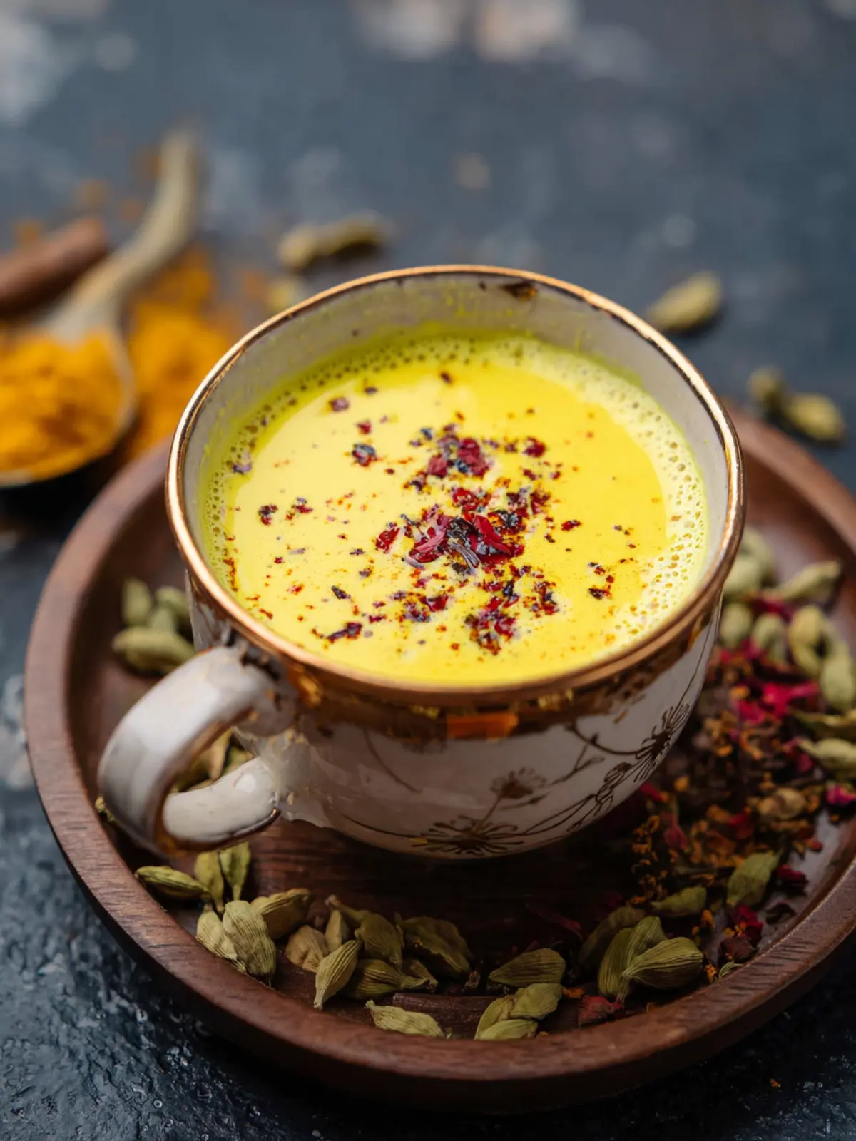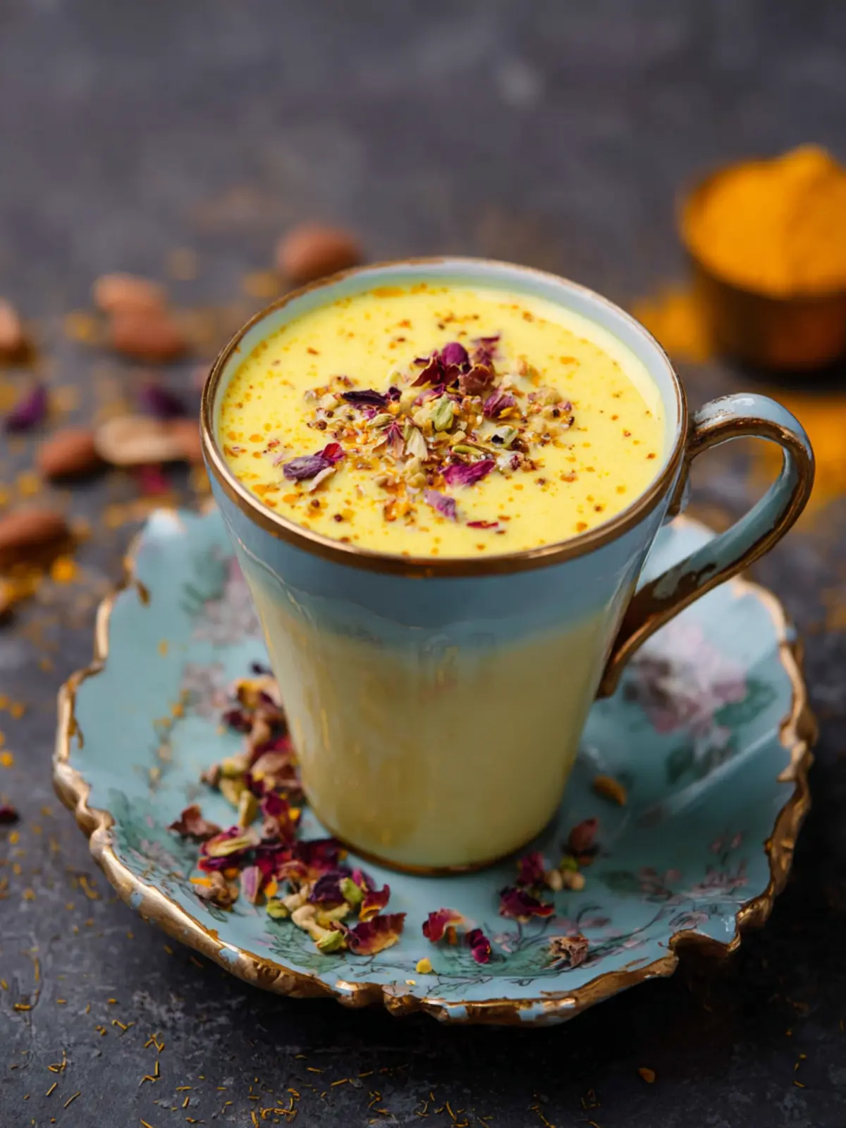 - Finish: Garnish with dried rose petals. Serve warm.