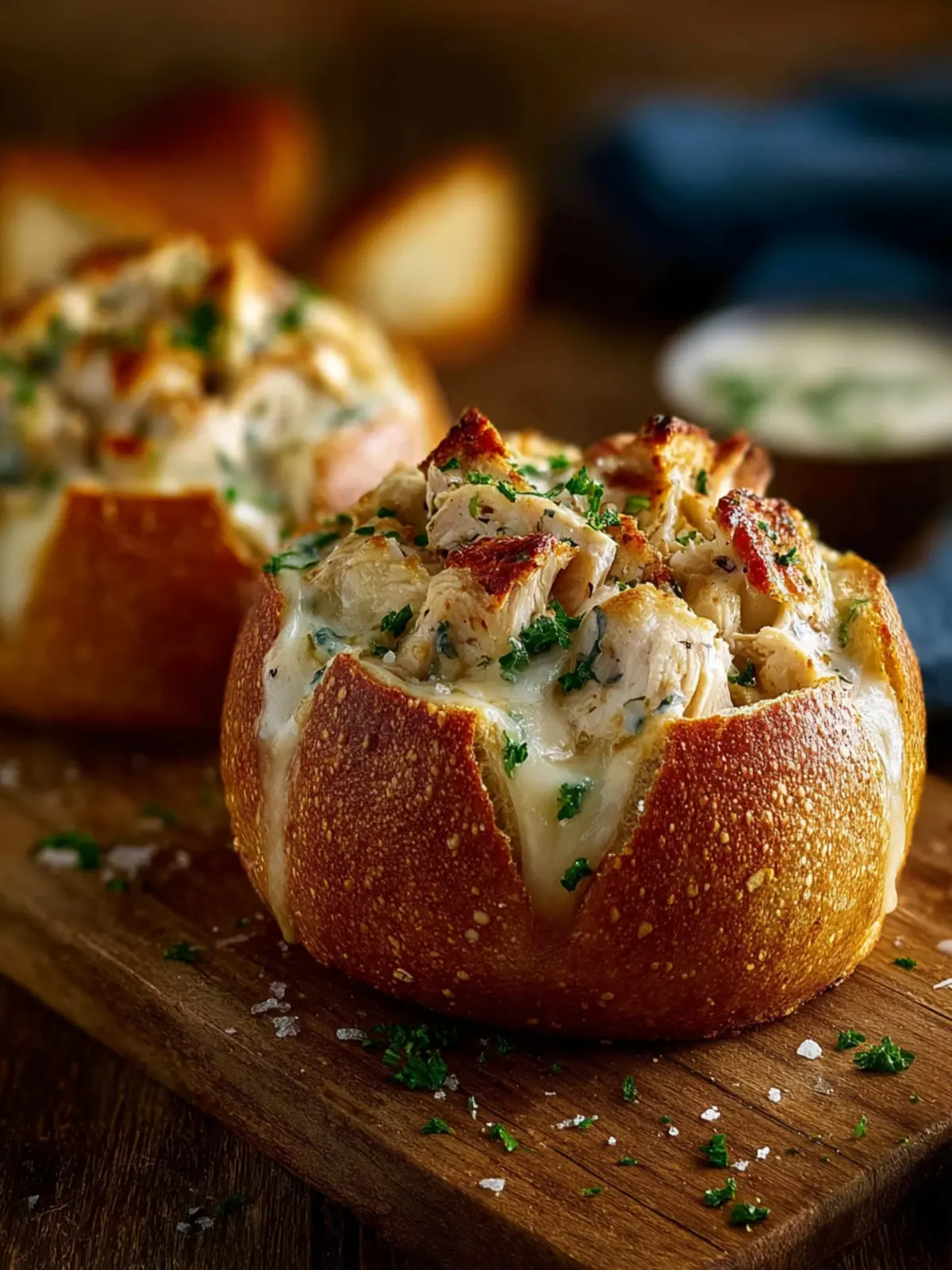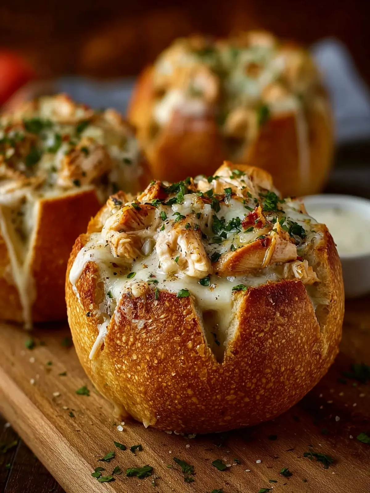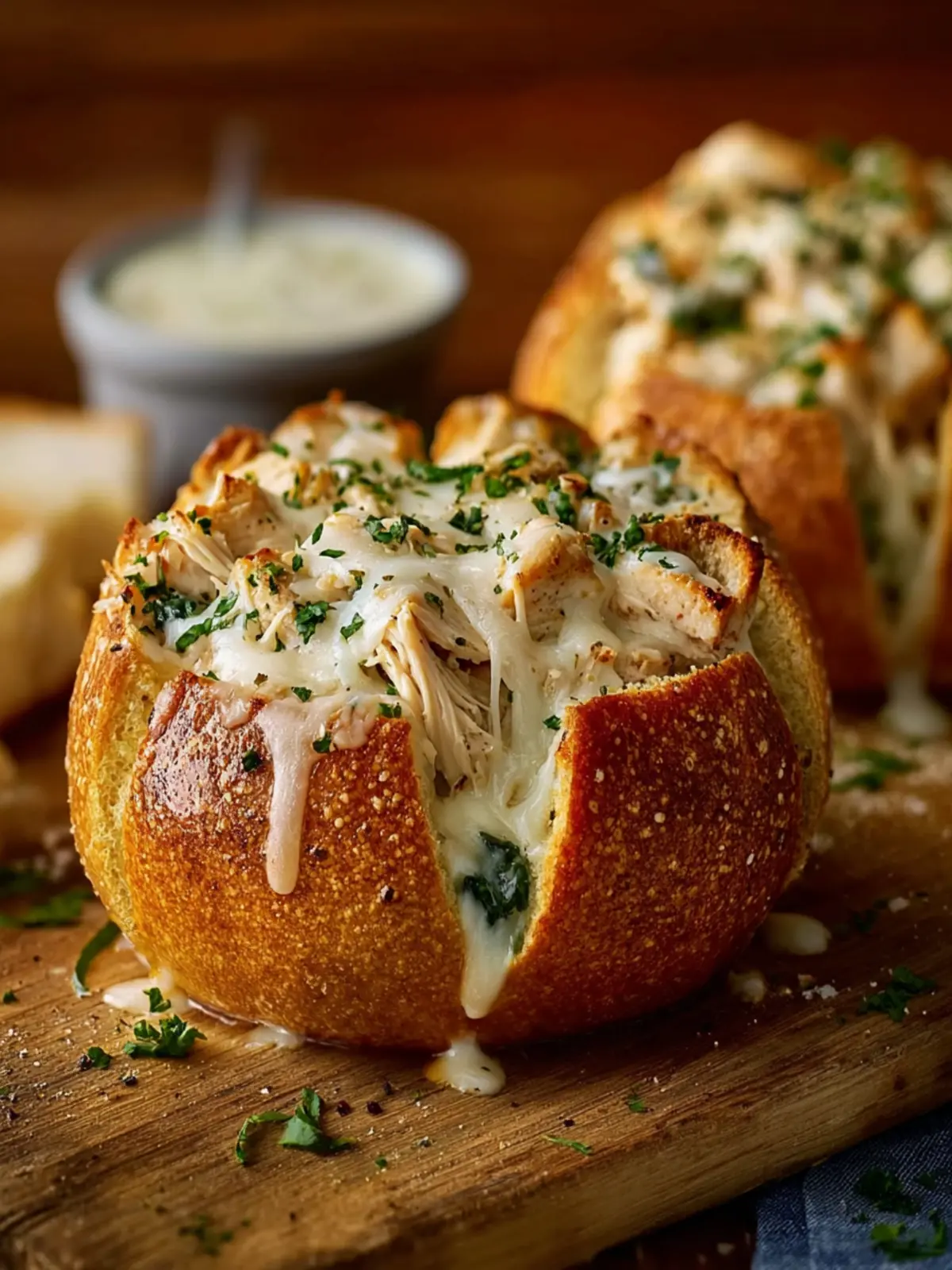 A sprinkle of freshly grated Parmesan and chopped parsley can elevate the aesthetic of your Chicken Alfredo Bread Bowls. These simple garnishes add not only a pop of color but also a hint of extra flavor that complements the dish beautifully.