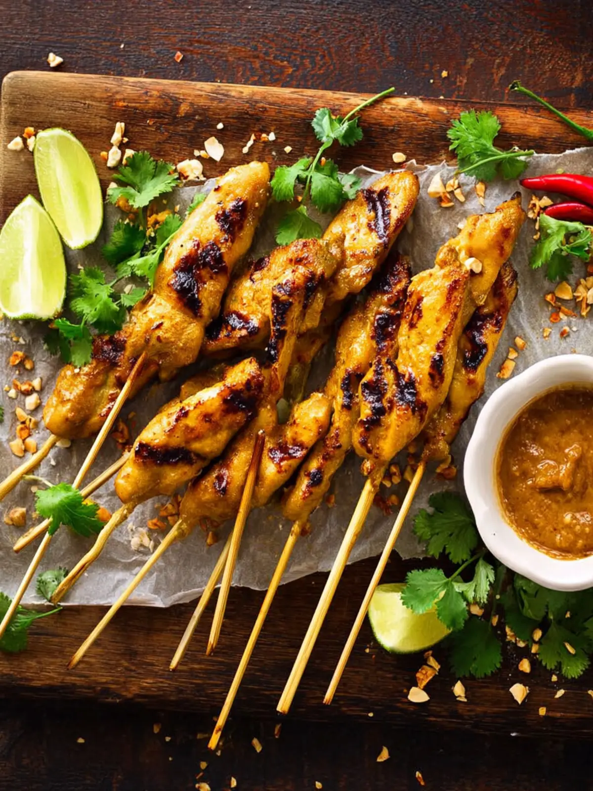 Absolutely! While grilling provides that classic smoky flavor, you can easily make Chicken Satay in the oven. Preheat your oven to 400°F (200°C) and place the marinated chicken skewers on a baking sheet lined with parchment paper. Bake for about 15–20 minutes, flipping halfway through, until the chicken is cooked through. For a bit of char, you can broil them for the last 2–3 minutes. Just keep an eye on them to avoid burning!