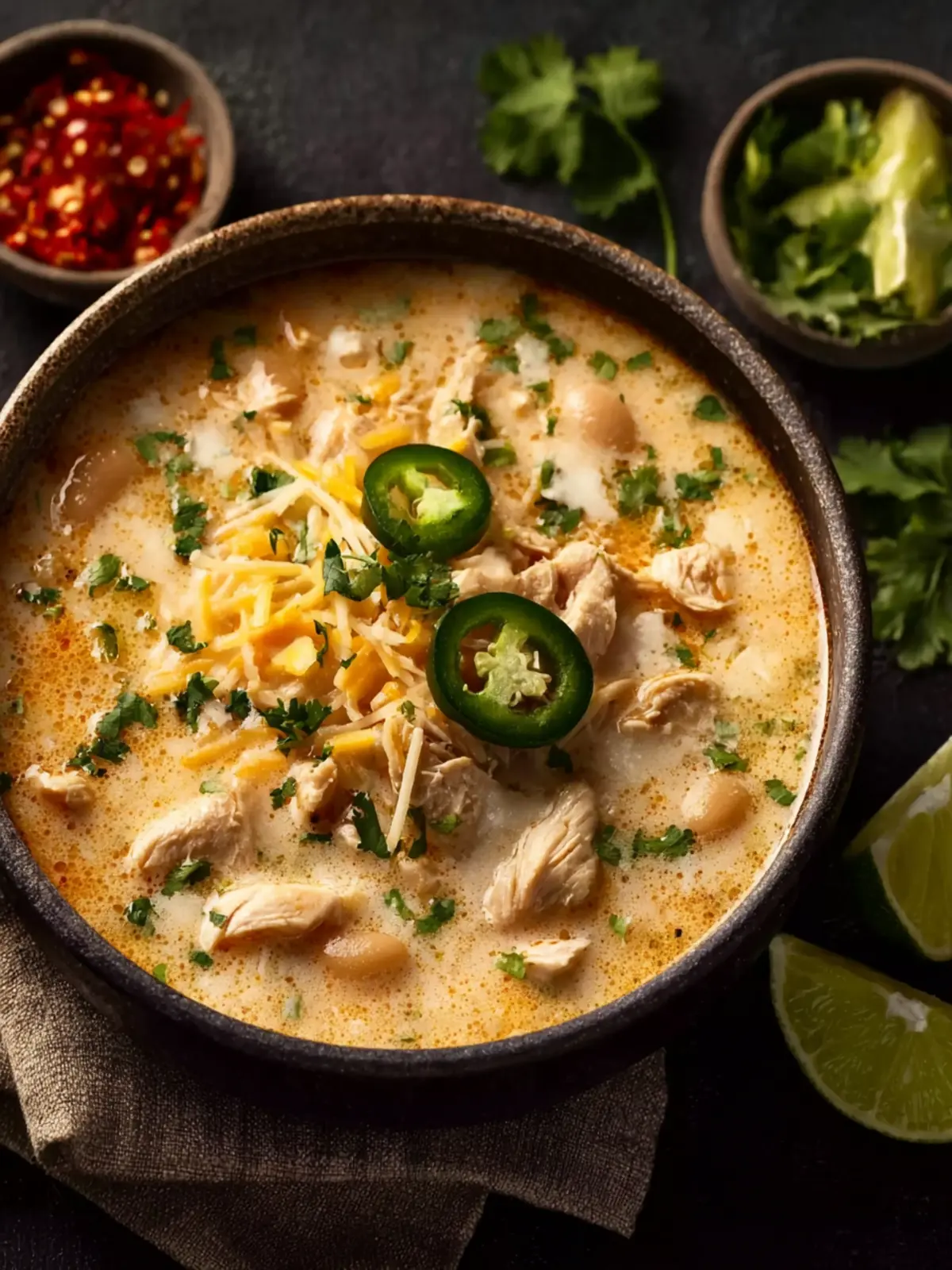 The right garnishes can take your creamy white chicken chili to the next level. Here are some ideas: