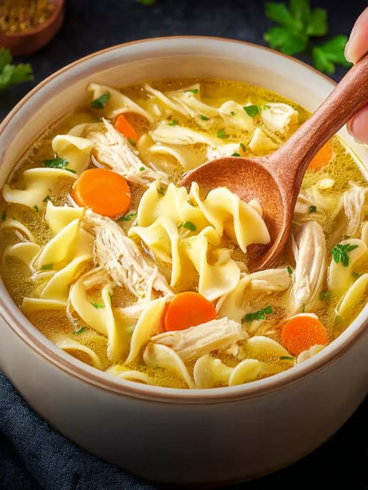Egg noodles are traditional, but feel free to experiment with different types! Whole wheat or gluten-free noodles can add unique flavors and textures. Just remember to cook them separately if you’re making the soup ahead of time to avoid mushiness.