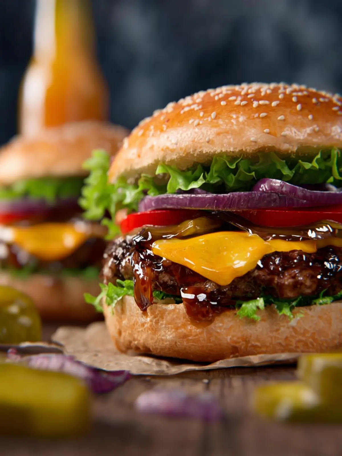 Toppings: Classic toppings like lettuce, tomatoes, pickles, and onion add crunch and freshness. Feel free to spice it up with your favorite sauces or a special secret sauce to make the burger your own.