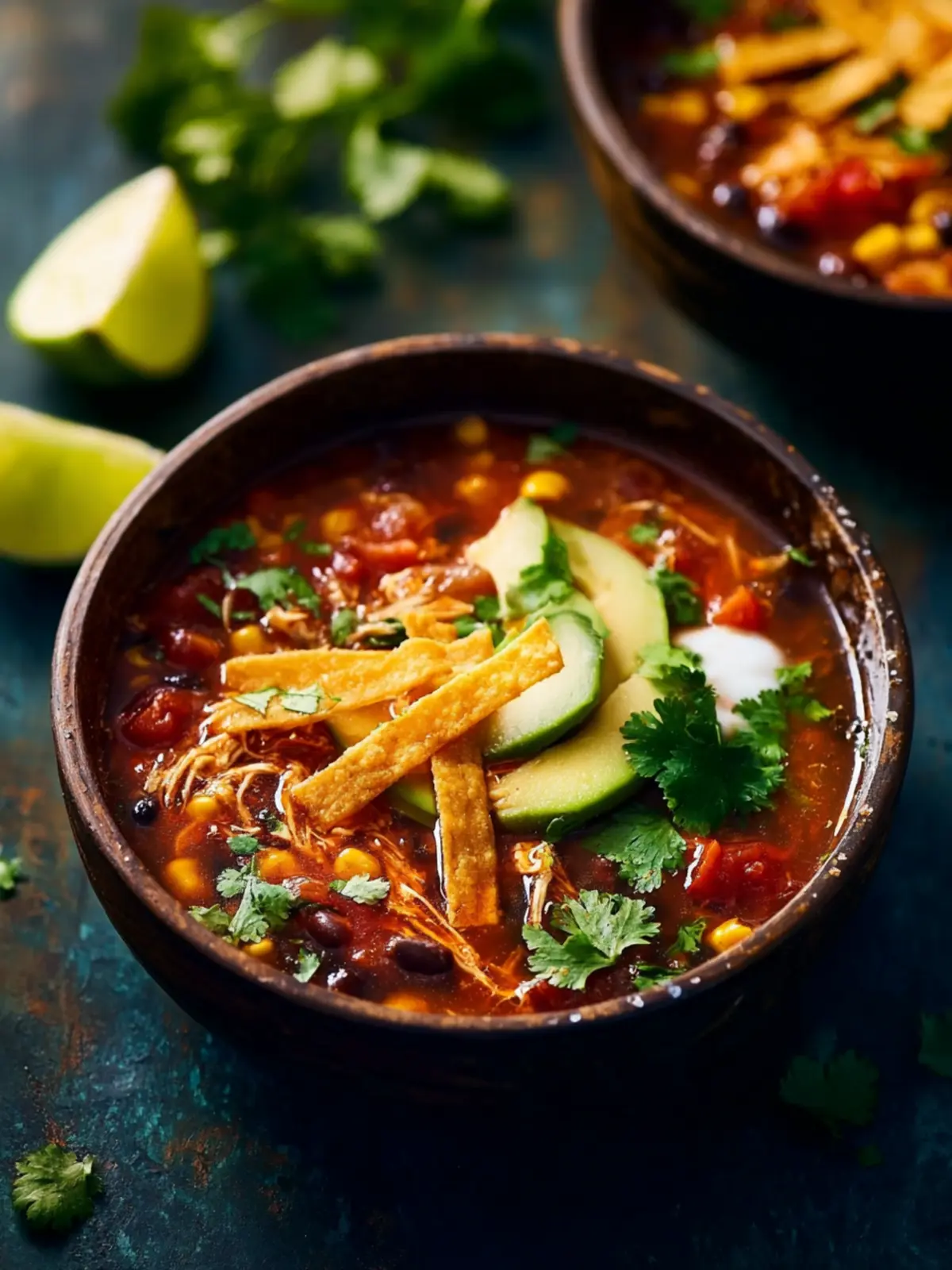 What makes this dish stand out? The vibrant mix of flavors and textures brings life to your palate while being heart-healthy. You have the tender chunks of chicken paired with crisp tortilla strips, all drenched in a spicy, savory broth enriched with fresh vegetables. This isn’t merely about taste; it’s also about the nutritional profile. Packed with fiber from beans, vitamins from peppers, and protein from chicken, every spoonful contributes to a healthier you.