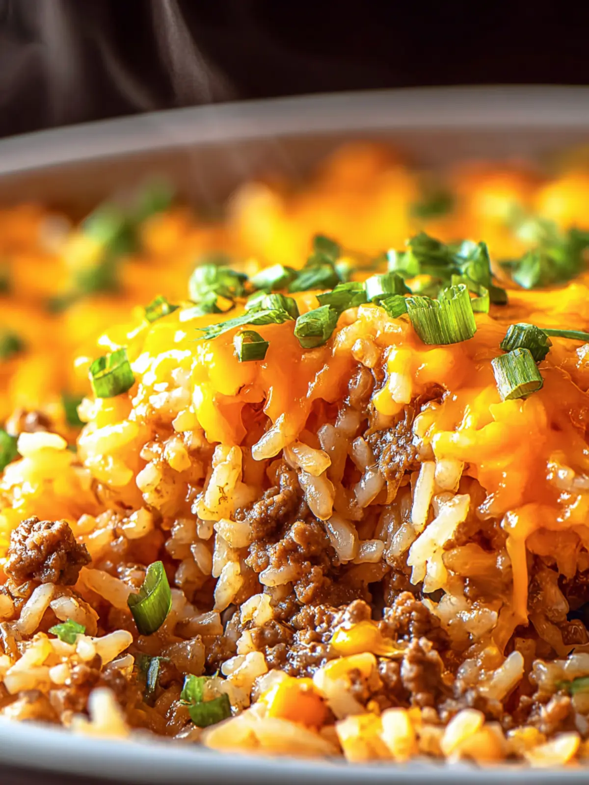 This casserole brings together the heartiness of ground beef, the fluffiness of rice, and an indulgent layer of cheese that melds all the flavors beautifully. It’s perfect for days when you need something filling without spending hours in the kitchen.