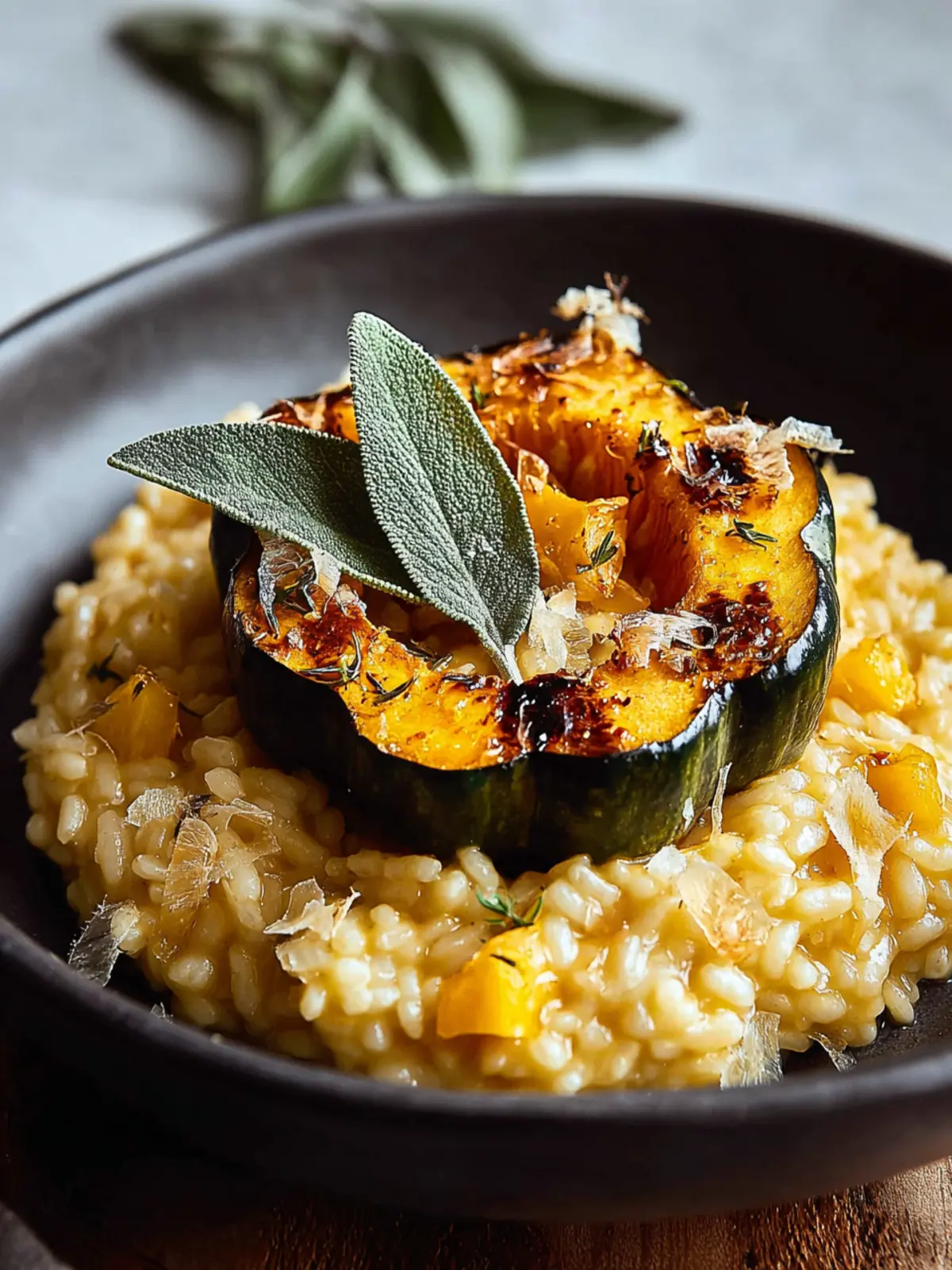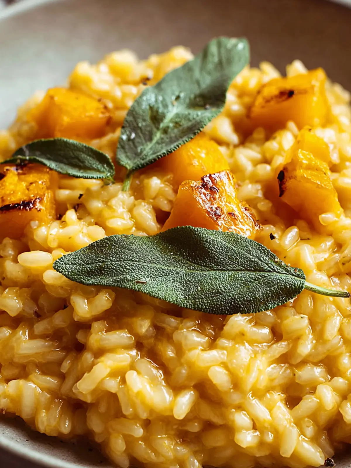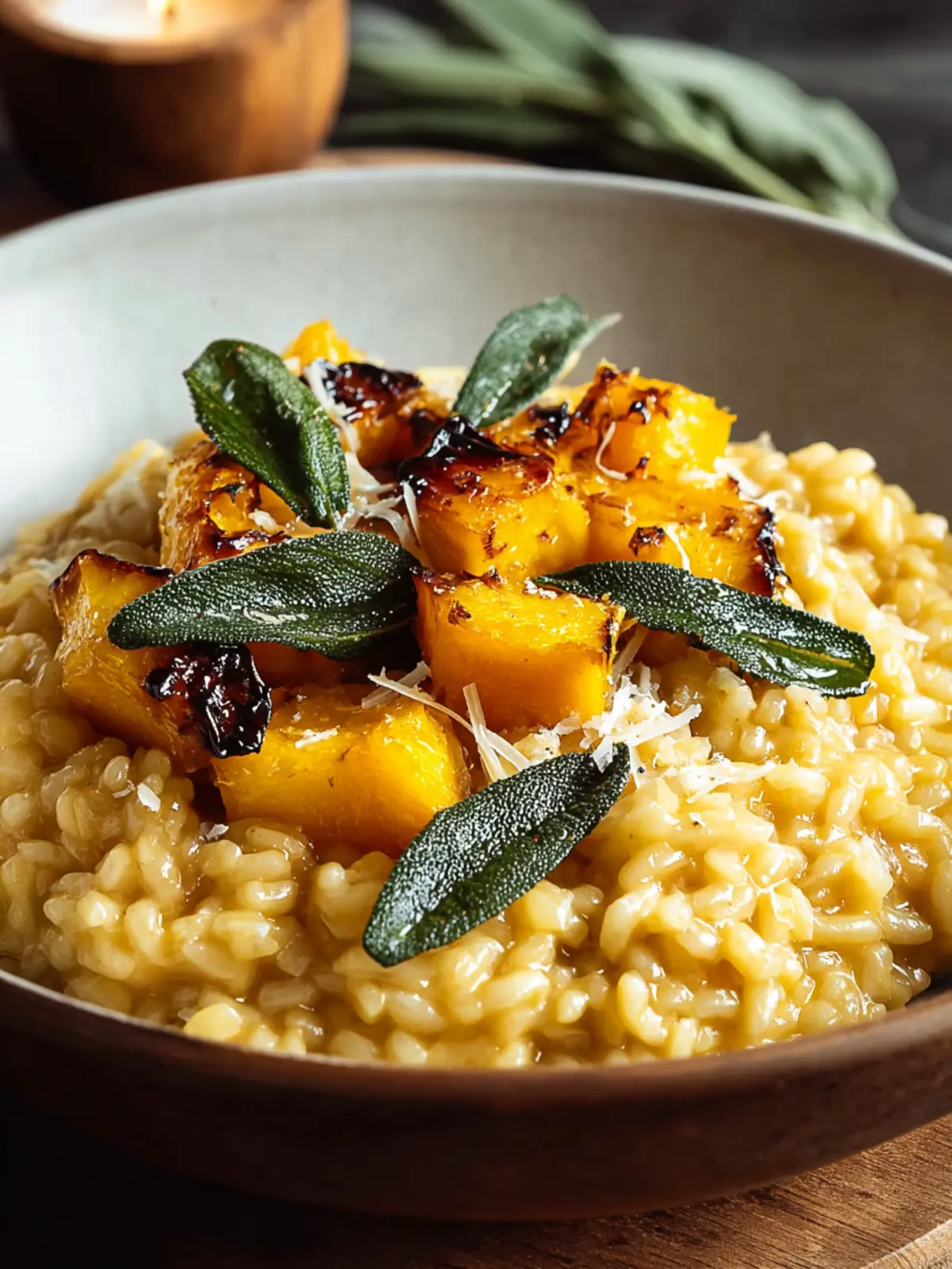 Sage: Fresh sage adds a lovely herbal note, perfectly balancing the richness of the butter. Its aromatic quality is essential to create that warm, comforting essence in the risotto.