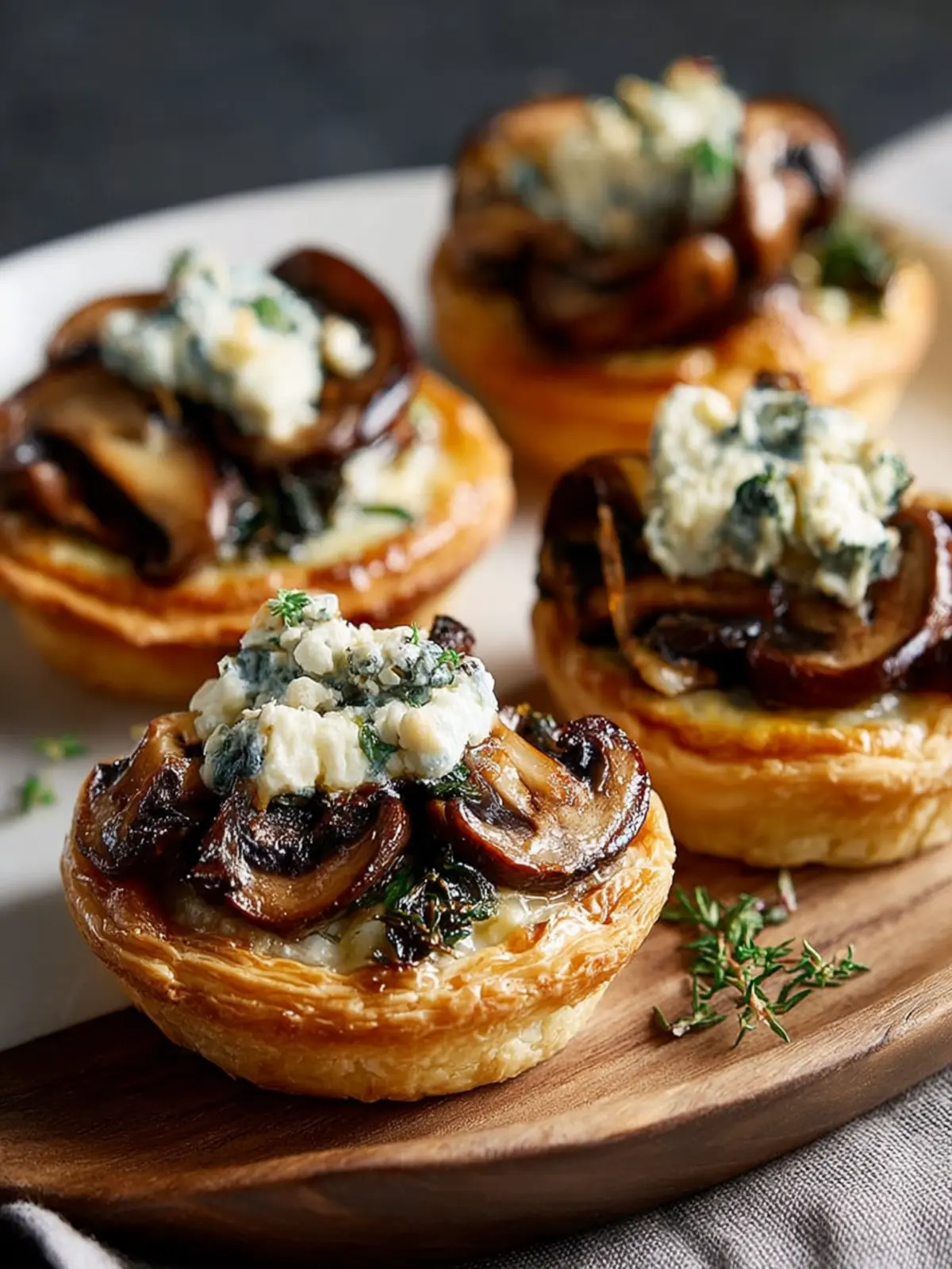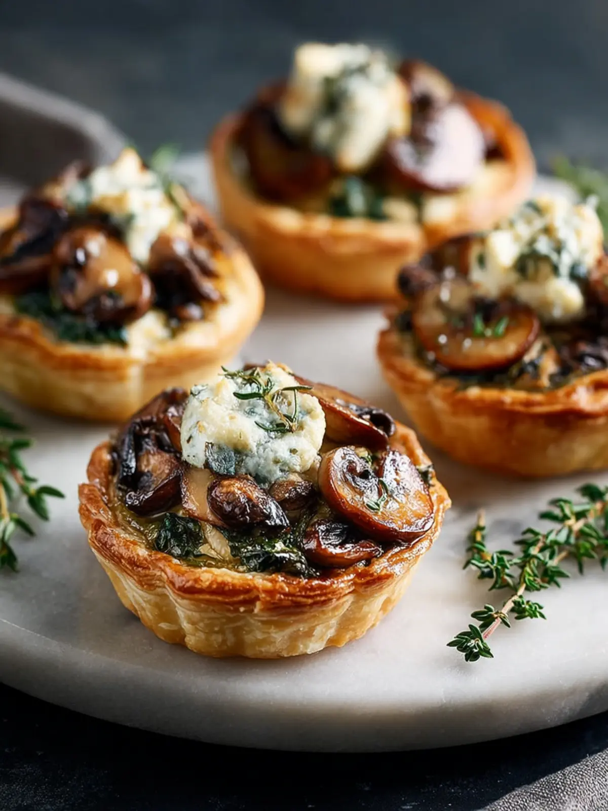 Plate with Care: Serve your mushroom, shallot, and herbed goat cheese tarts on a wooden platter or a vibrant ceramic dish. Garnish with fresh herbs, like thyme or chives, for a pop of color that invites your guests to dig in.