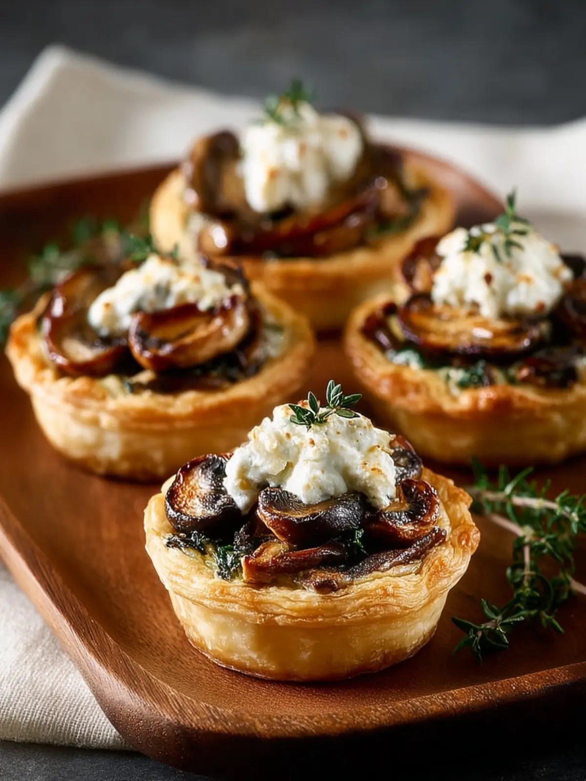 Fresh herbs can elevate the flavor profile of your tarts significantly. If you have rosemary or thyme on hand, they pair wonderfully with the goat cheese and mushrooms. A sprinkle of freshly chopped parsley before serving adds a pop of color and flavor.