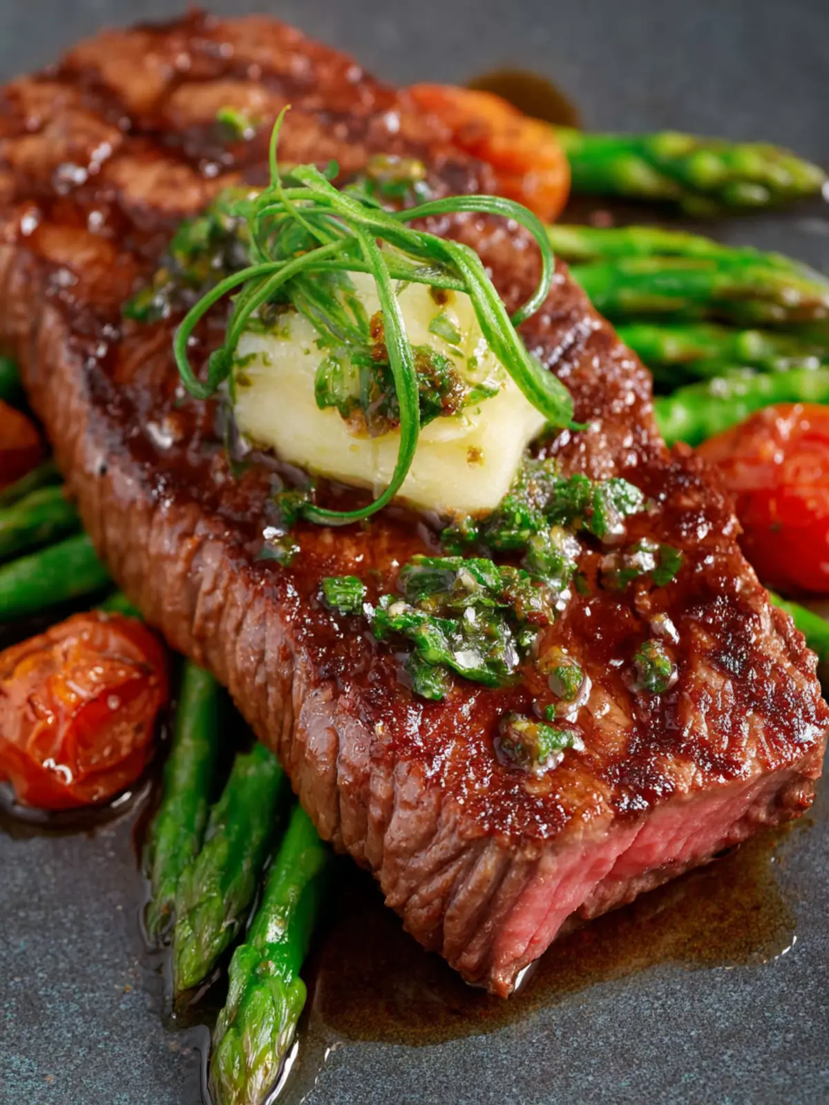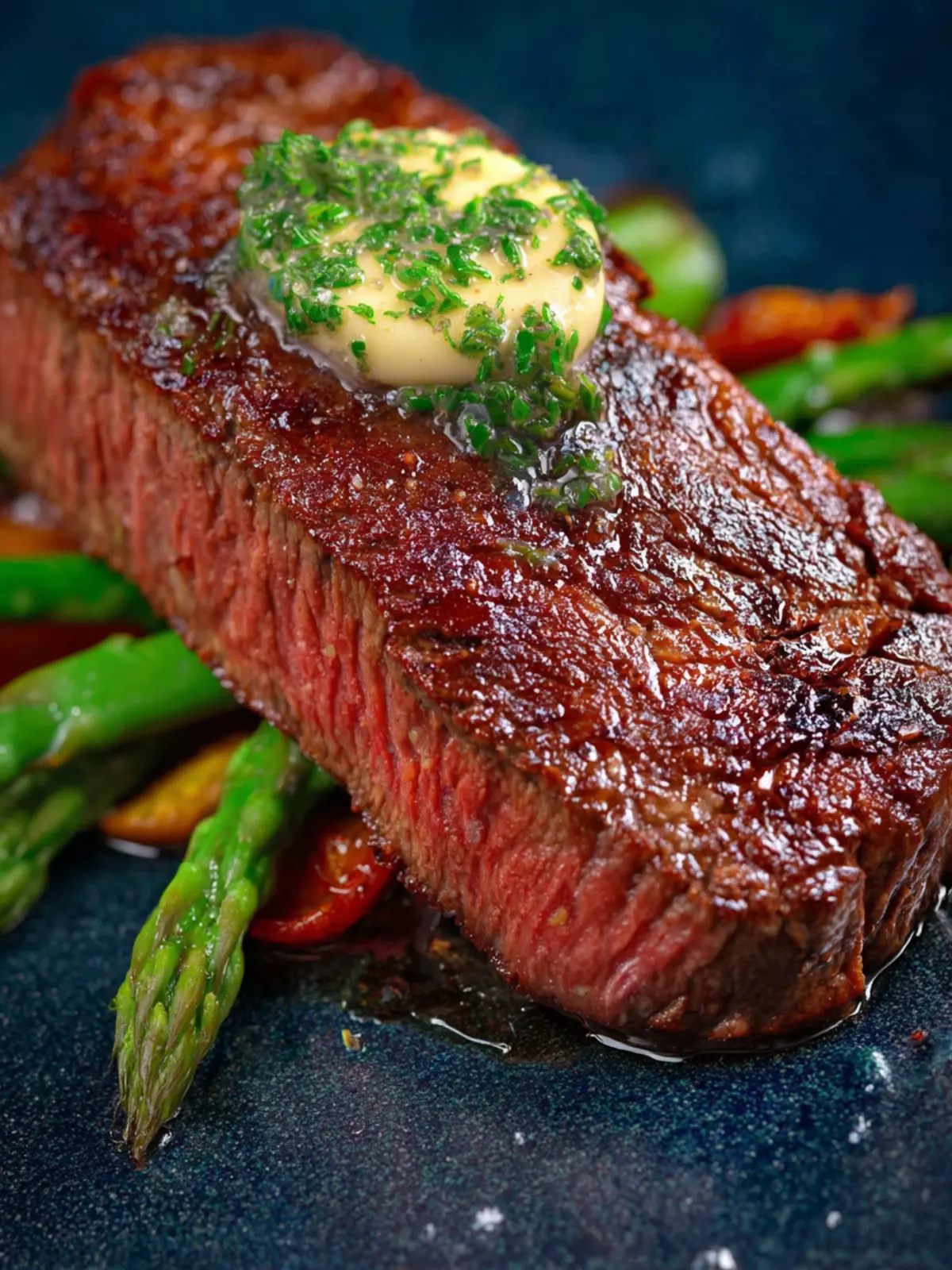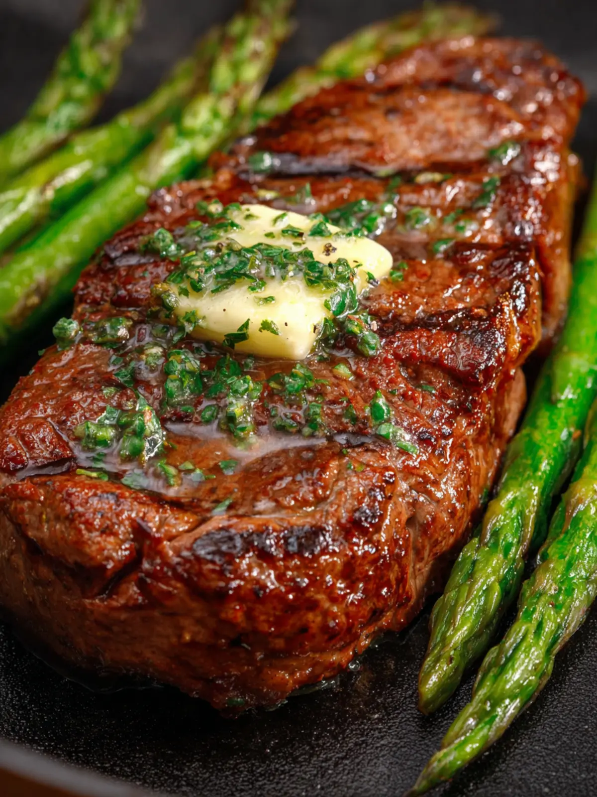 Enjoy the mouthwatering flavor of perfectly seared NY strip steaks with compound garlic butter.