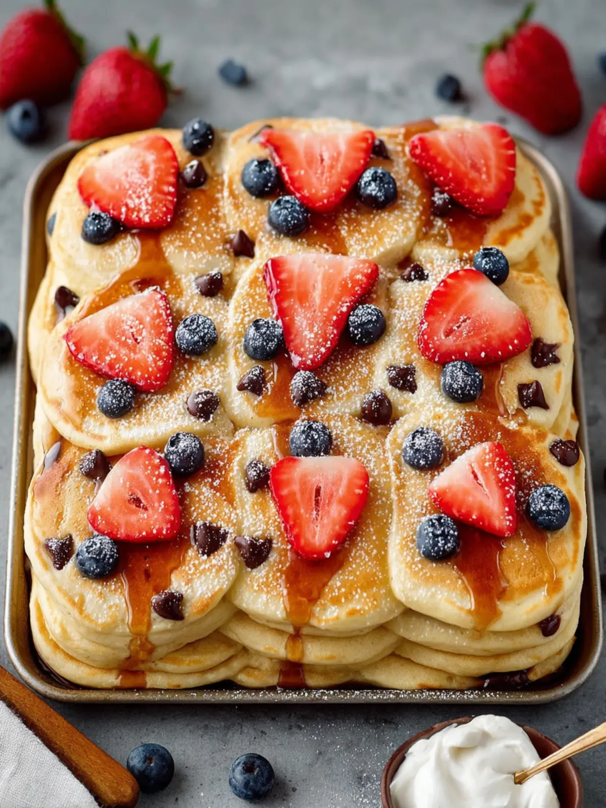 Finally, one of the best things about Sheet Pan Pancakes is how easily they can be customized. Fruits, nuts, and spices can be added according to your taste, making every batch unique. From chocolate chips to fresh blueberries, the possibilities are endless, ensuring that this recipe will never get boring. So, get your mixing bowls ready—breakfast just became a whole lot easier and way more delicious!