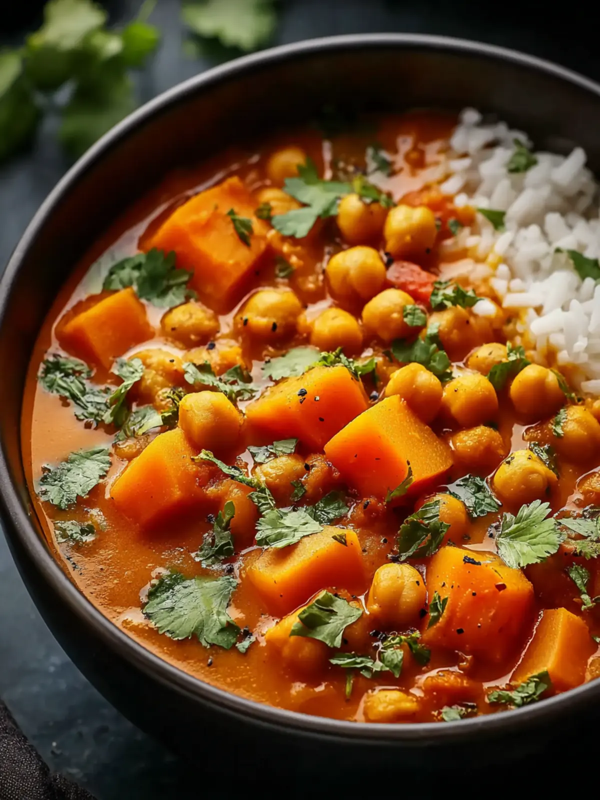 A flavorful and hearty sweet potato chickpea curry, perfect for a comforting meal.